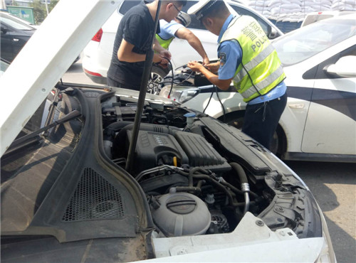 8月26日中午11點(diǎn),周口港區(qū)公安分局民警發(fā)現(xiàn),一輛私家車行經(jīng)周項(xiàng)路周口港區(qū)路段時(shí),發(fā)生故障停在快車道,影響道路暢通。港區(qū)交警部門負(fù)責(zé)人姜亞偉上前了解情況,得知汽車電瓶出現(xiàn)故障,無法正常發(fā)動(dòng)。于是姜亞偉將警車開到私家車旁,用汽車電瓶連接線將警車電池與私家車鏈接,幫助車主啟動(dòng)汽車,迅速恢復(fù)道路交通秩序。