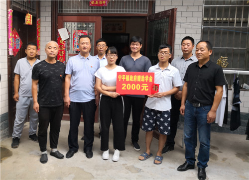 鄲城縣公安局駐王寨行政村第一書記朱金光帶領(lǐng)隊員邵濤、亞光,在走訪調(diào)查中得知這一情況,積極向鄲城縣慈善總會申請助學(xué)金2000元,向團(tuán)縣委申請希望工程圓夢行動助學(xué)金3000元,并向公安局黨委匯報,局長陳鳳祥、政委趙紅建高度重視召開黨委會研究決定給王海洋家特批6000元助學(xué)金,寧平鎮(zhèn)黨委、鎮(zhèn)政府得到消息后,也第一時間作出響應(yīng),幫助困難孩子圓大學(xué)夢。
