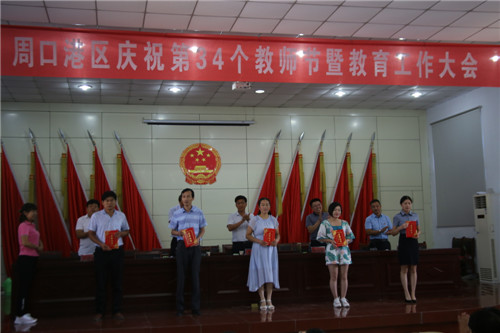 港區(qū)黨委委員張東立代表港區(qū)黨委、管委會(huì)向港區(qū)全體教育工作者、離退休教師致以節(jié)日的問候致。張東立說,周口港區(qū)自成立以來,每年都舉行隆重的教師節(jié)慶祝表彰大會(huì),大張旗鼓表彰一大批優(yōu)秀教師、優(yōu)秀校長、先進(jìn)教育工作者等教師楷模,在全區(qū)營造了尊師重教的濃厚氛圍。近年來,全區(qū)總體辦學(xué)條件明顯改善,各級(jí)教育協(xié)調(diào)發(fā)展,教育環(huán)境明顯優(yōu)化,教師隊(duì)伍建設(shè)明顯加強(qiáng),教育質(zhì)量明顯提高,群眾滿意度明顯提升。