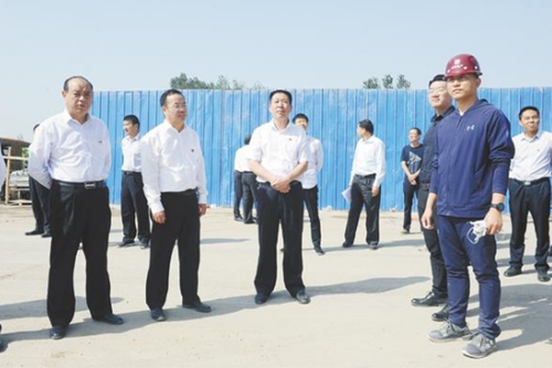 當(dāng)天上午,閆立超、張建黨一行先后來到貴和家園、聯(lián)營職專新校區(qū)、建業(yè)世悅府、乾和家園、萬達(dá)城市綜合體、仁和家園(西區(qū))、圣樺城市綜合體等12個(gè)項(xiàng)目施工現(xiàn)場進(jìn)行觀摩。每到一處,閆立超、張建黨一行都詳細(xì)聽取項(xiàng)目負(fù)責(zé)人的匯報(bào),對(duì)施工過程中遇到的困難和問題進(jìn)行現(xiàn)場研判,現(xiàn)場提出解決方案。