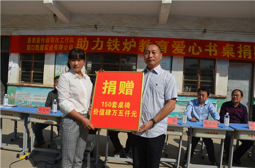 鐵爐行政村是西華縣委宣傳部定點(diǎn)扶貧村,此次由愛(ài)心企業(yè)家方凱捐贈(zèng)價(jià)值近5萬(wàn)元的愛(ài)心課桌,將切切實(shí)實(shí)地改善孩子們的學(xué)習(xí)條件。