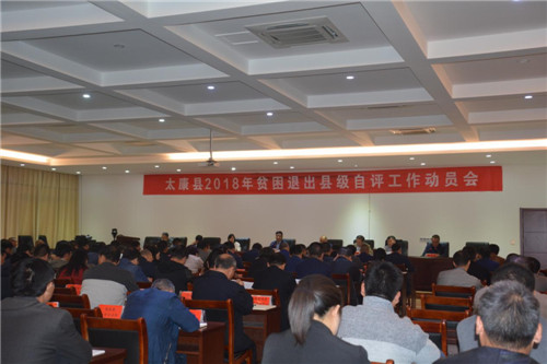 10月21日,太康縣在脫貧攻堅指揮部三樓會議室召開2018貧困退出縣級自評工作動員會,縣委副書記、政法委書記王程清,縣委常委、副縣長張保華、王永剛、王正義、司春榮、劉鳳芹、??サ瓤h級領(lǐng)導(dǎo)以及縣直有關(guān)單位扶貧工作負責(zé)同志參加了會議。