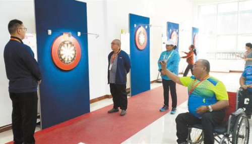 10月24日下午,河南省第七屆殘疾人運(yùn)動(dòng)會(huì)飛鏢項(xiàng)目坐姿組比賽在市體育中心老年館進(jìn)行。參賽選手在認(rèn)真比賽的同時(shí),也會(huì)在比賽間隙放松心情,相互分享各自的心得,享受比賽的過程。②8 記者 牛思光 攝