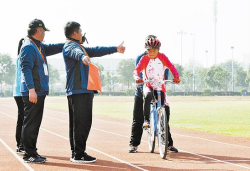 10月24日上午,河南省第七屆殘疾人運(yùn)動(dòng)會(huì)自行車比賽女子聽力組5公里個(gè)人計(jì)時(shí)賽進(jìn)入決賽。周口小將葛雨露,在發(fā)令員、手語工作人員的示意下展開角逐。②8記者 梁照曾 攝
