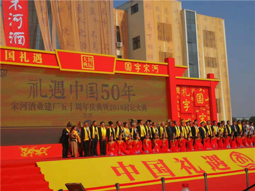 金秋十月,五谷豐登,神州大地,秋釀飄香。在這美好的季節(jié),地處老子故里的河南宋河酒業(yè)迎來了她五十歲華誕。10月30日,“禮遇中國五十年——宋河酒業(yè)建廠五十周年慶典暨2018封壇大典”在鹿邑宋河酒業(yè)生產(chǎn)園區(qū)隆重開幕,省市縣領導、行業(yè)專家與來自全國各地的經(jīng)銷商、供應商以及全國知名品牌的白酒企業(yè)近1500人共同見證這一時刻,見證在豫酒轉型升級政策推動下、宋河酒業(yè)的振興之路。