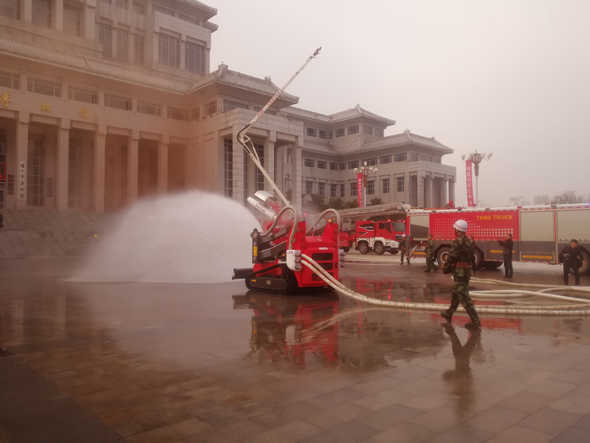 無人機(jī)、消防機(jī)器人、53米云梯消防車紛紛亮相