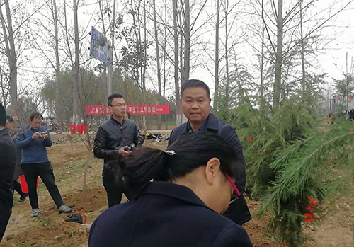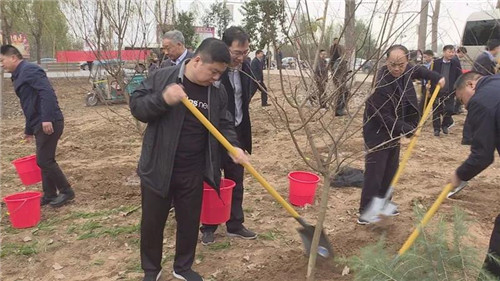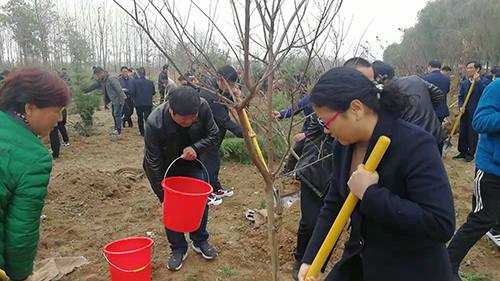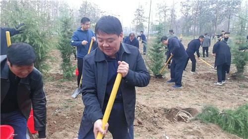 當(dāng)天下午雖然暖陽照射,但初冬的鹿邑大地仍是涼風(fēng)習(xí)習(xí)。不過這一點(diǎn)兒也沒有影響到大家的心情。一到植樹現(xiàn)場,梁建松、李剛等領(lǐng)導(dǎo)就和大家一起興致勃勃地拿起鐵鍬等工具忙碌起來,揮鍬鏟土,扶樹填土,澆水正苗,每道工序都做得認(rèn)真細(xì)致、一絲不茍。
