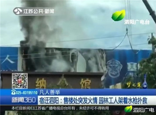9月5日上午10時許,江蘇省泗陽縣北京東路塞納公館營銷中心因招牌頂部電焊火星濺落,致使門頭起火。起火點距離地面約5米,滅火器等常用滅火設備無法起作用。為防止意外,售樓處工作人員及時疏散群眾,同時撥打119救火電話。就在此時,身為泗陽縣園林綠化管理處的技術員曹書志,正開著灑水車進行綠化帶澆水作業(yè),見到路邊濃煙滾滾,火勢兇猛,曹書志二話不說,立刻把灑水車開到著火點,不顧生命危險下車,和其他3名工人,迅速打開前噴水頭和后部水炮供水的副發(fā)動機進行滅火,在持續(xù)噴射十余分鐘后成功將火撲滅。