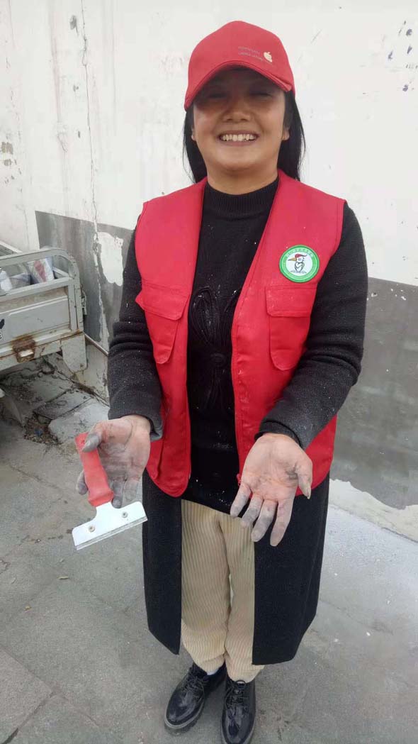 周口市啄木鳥志愿者服務(wù)工作委員會(huì)臨時(shí)黨支部書記、周口市慈孝文化促進(jìn)會(huì)會(huì)長(zhǎng)孫彩云更是不怕臟,不怕累,連個(gè)手套都不帶,直接用雙手拿著鏟刀或者抹布清理墻上的小廣告,最后弄得雙手和滿身都是污漬?!盀榱宋覀兊某鞘懈?,作為一名志愿者,就應(yīng)該不怕累,不怕苦?!?/p>
