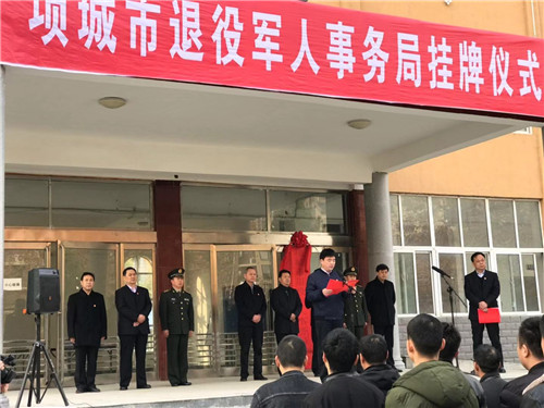 11月27日,項城市退役軍人事務局掛牌成立。市委書記劉昌宇為市退役軍人事務局成立揭牌。市四個班子和人武部領導、市直各部委副職及政府工作部門主要負責人出席掛牌儀式。市委副書記張文成主持儀式。市委常委、常務副市長張森講話。