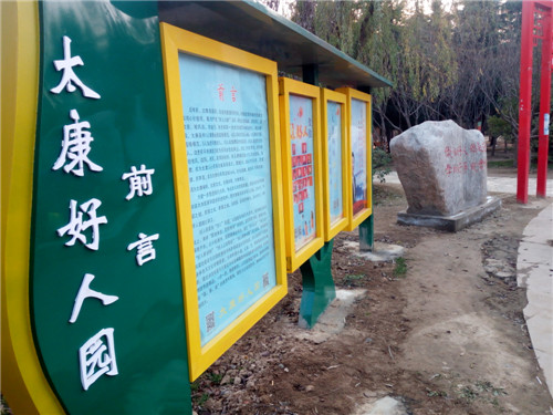 為把好人精神鐫刻在太康發(fā)展和進步的進程中,把太康建設成為好人之城、文明之城、和諧之城、美麗之城、幸福之城,從2018年9月起,太康“好人園”經過緊鑼密鼓地籌建,如今開園迎賓。好人園緊扣“好人”主題,以道德風尚建設為主線,在休閑公園的基礎上,秉承“因地制宜、因勢利導”的原則,堅持寓教于園、寓教于景、寓教于樂,以小處著手、局部微調的手法,通過“好人步道”“好人亭”“好人樹”“好人大舞臺”“好人精神長廊”五大版塊,將道德風尚高地建設與公園的整體風格和功能定位完美結合。好人園兼顧了公園本身特色與文化傳播需要,利用林蔭小道,以石、亭、牌等基礎設施為載體,圖文并茂地展示太康近年來獲得國家和省級表彰的道德典型、身邊榜樣的先進事跡,一步一景,隨景賦形。市民在游園過程中,潛移默化地接受“真、善、美”的教育和熏陶,激發(fā)人們見賢思齊,榜樣的引領作用不斷放大。