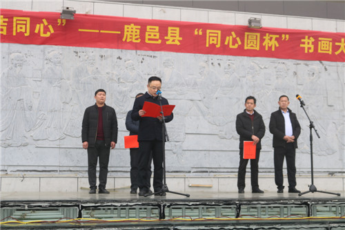 為慶祝改革開放40周年,深入學(xué)習(xí)習(xí)近平新時(shí)代中國(guó)特色社會(huì)主義思想和黨的十九大精神, 鞏固和發(fā)展愛國(guó)統(tǒng)一戰(zhàn)線,在新時(shí)代畫好最大同心圓, 團(tuán)結(jié)和帶領(lǐng)各族各界人士深入挖掘中華優(yōu)秀傳統(tǒng)文化蘊(yùn)含的思想觀念、人文精神、道德規(guī)范,讓中華文化展現(xiàn)出永久的魅力和時(shí)代風(fēng)采, 12月20日上午,由中共鹿邑縣委統(tǒng)戰(zhàn)部主辦、縣文學(xué)藝術(shù)界聯(lián)合會(huì)承辦、“天地人筆業(yè)”協(xié)辦的鹿邑縣“紀(jì)念改革開放四十周年·同心圓杯書畫大賽” 在城區(qū)問道苑廣場(chǎng)開展??h委常委、統(tǒng)戰(zhàn)部部長(zhǎng)閆家明出席開幕式并講話??h委統(tǒng)戰(zhàn)部常務(wù)副部長(zhǎng)李繼良,縣文聯(lián)主席王亞飛,副主席于連河以及本次全體獲獎(jiǎng)和入展作者,文聯(lián)所屬各協(xié)會(huì)主席團(tuán)成員近200人參加開幕式。