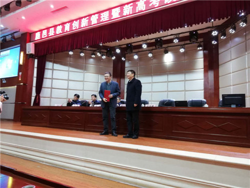 12月26日,鹿邑縣召開教育創(chuàng)新管理暨新高考改革專家報(bào)告會(huì)??h委副書記、縣長(zhǎng)李剛為報(bào)告會(huì)致辭,勉勵(lì)全縣教育工作取得新突破??h委常委、縣委辦主任宋濤主持會(huì)議。副縣長(zhǎng)王玉超為全國(guó)高考命題理科組組長(zhǎng)、原上海虹口區(qū)教育局局長(zhǎng)、同濟(jì)大學(xué)理學(xué)博士常生龍局長(zhǎng)頒發(fā)"鹿邑縣教育提質(zhì)特聘專家"證書,會(huì)議還對(duì)全縣教育工作者作專題講座。