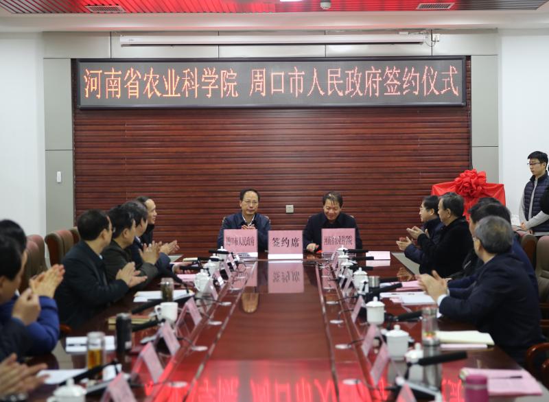 1月9日,河南省農(nóng)業(yè)科學(xué)院與周口市人民政府簽訂全面戰(zhàn)略合作協(xié)議暨河南省農(nóng)業(yè)科學(xué)院鄲城分院揭牌儀式在鄲城舉行,中國工程院院士、省農(nóng)科院院長張新友,省農(nóng)科院副院長衛(wèi)文星,副市長張廣東,以及鄲城縣委書記羅文閣、縣長李全林等相關(guān)負(fù)責(zé)同志參加儀式。