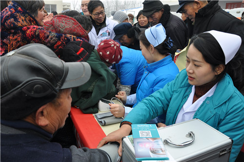 正在排隊量血壓的馬河村村民馬長運說:“我今年70多歲,血壓有點高,聽說這 里有義診活動,一大早便來這里等待了?!?/p>