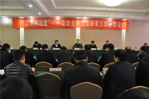 1月9日,“改革再出發(fā)”— 全市全面深化改革工作座談會在商水召開。會議對40年來全市改革開放取得的顯著成績和變化進行暢談式總結回顧,對今后一個時期深化改革工作進行相互啟發(fā)式思考謀劃。