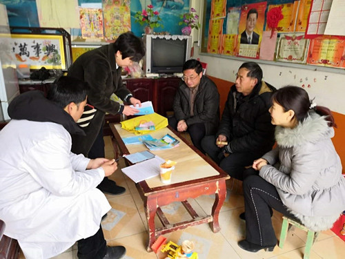 鄲城縣第二醫(yī)療健康服務(wù)集團(tuán)副院長王景春、醫(yī)共體辦公室主任李慧滿與村醫(yī)入戶督導(dǎo)家庭醫(yī)生簽約服務(wù)情況。在醫(yī)務(wù)人員的引導(dǎo)下,村民們有序地排著隊(duì),等待醫(yī)生們對(duì)其問診。