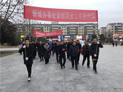 會后,黨工委書記張玉杰、辦事處主任王一博帶隊組織全體干部舉著橫幅,帶著紅袖標(biāo)徒步10多公里,到鹿鼎建材城、農(nóng)貿(mào)市場、世紀(jì)廣場、丁老家、張?zhí)枠?、羅堂社區(qū)等重點區(qū)域進(jìn)行宣傳。