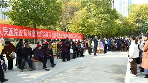運(yùn)動(dòng)會(huì)共設(shè)四個(gè)項(xiàng)目:你演我猜、踩氣球、搶凳子和蒙眼擊鼓。講究默契的你演我猜,團(tuán)隊(duì)協(xié)作的踩氣球,笑料百出的蒙眼擊鼓,讓整個(gè)賽場充滿著歡聲笑語。激烈的比賽也引來了患者及家屬的圍觀,他們也被這歡樂的氣氛感染,臉上綻放出了笑容。在競爭激烈的搶凳子比賽中,主持人加入了知識(shí)問答環(huán)節(jié),沒搶到凳子的要回答主持人提出的扶貧措施問題,隨著一個(gè)個(gè)參賽者被淘汰,醫(yī)院的各項(xiàng)扶貧措施也給圍觀者們留下了深刻的印象。