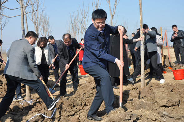 開工儀式結(jié)束后,與會領(lǐng)導在森林公園項目所在地參加植樹造林活動,為森林公園植上第一片新綠。