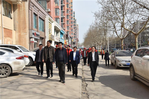 3月26日上午,川匯區(qū)政協(xié)主席張劍鋒,黨組副書記、副主席梁顯棟,副主席王建國、馬淮海到建安路檢查督導“市容工作日”活動開展情況。七一路辦事處主任王峰陪同檢查。