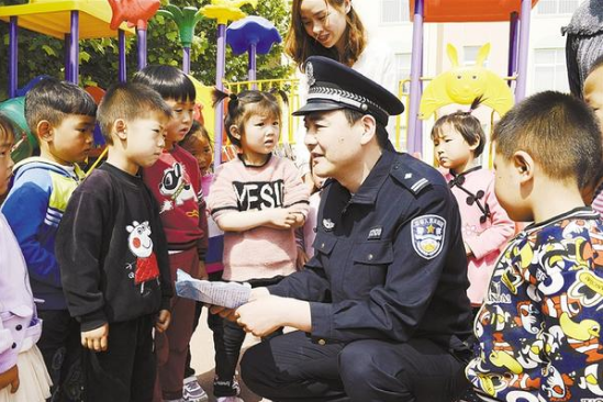 5月10日,扶溝縣公安局汴崗派出所民警走進轄區(qū)幼兒園,向小朋友介紹地震逃生技巧、火災(zāi)預(yù)防措施和火災(zāi)報警常識等,提高了小朋友應(yīng)急自救互救能力。 記者 謝永靜 通訊員 李龍喜 攝
