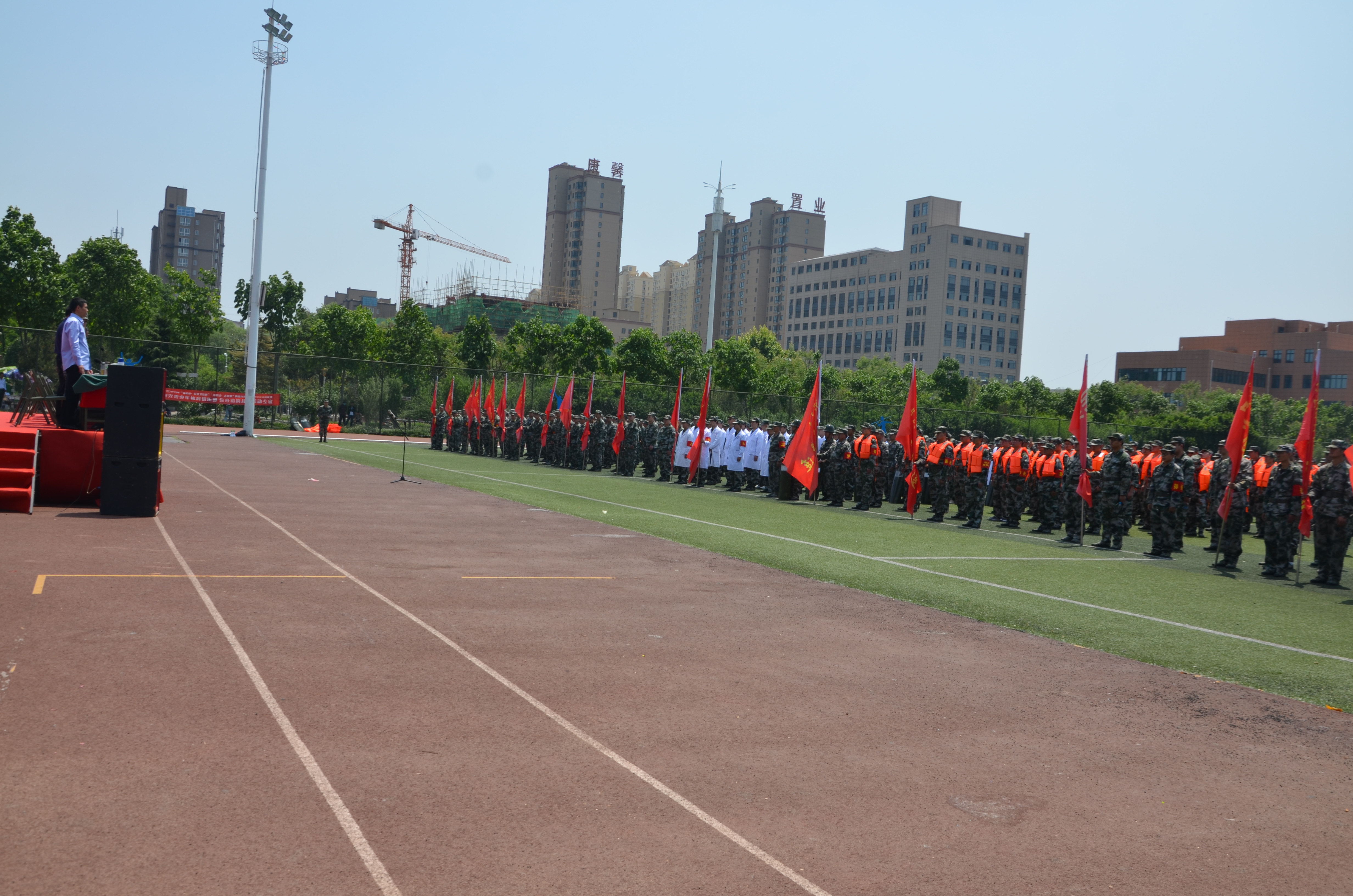 5月10日上午,沈丘縣體育場(chǎng)上紅旗招展、隊(duì)列整齊,民兵同志全副武裝、精神抖擻。綜合應(yīng)急分隊(duì)、防汛抗洪分隊(duì)、應(yīng)急防爆分隊(duì)、醫(yī)療救護(hù)分隊(duì)和22個(gè)鄉(xiāng)鎮(zhèn)民兵應(yīng)急排近千名基干民兵參加了沈丘縣2019年基干民兵集中點(diǎn)驗(yàn)暨開訓(xùn)動(dòng)員大會(huì)。