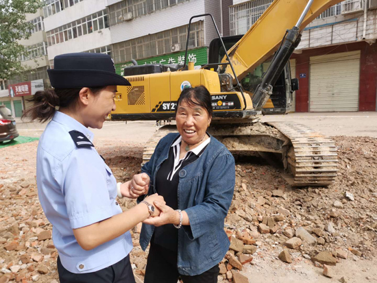 “創(chuàng)衛(wèi)不留死角,想盡辦法也要給市民良好的出行體驗(yàn)?!笔泄簿终匍_黨委會(huì)議專題研究建新路西段附近居民出行問題,發(fā)出“克服困難、自掏腰包、推倒違建、平整道路”的指令,號(hào)召全警幫助居民實(shí)現(xiàn)安全出行?!斑@些民警、社區(qū)干部都跟我的孩子差不多大,看著他們頂著大太陽(yáng)清理雜物,夜里還在加班加點(diǎn)工作,我給他們說(shuō)‘孩子來(lái)家喝口水,吃個(gè)飯’他們都笑著拒絕了。真感謝他們,也心疼他們?!闭f(shuō)起“創(chuàng)衛(wèi)”以來(lái),市公安局民警和社區(qū)干部的工作,70多歲的智老太眼含熱淚。
