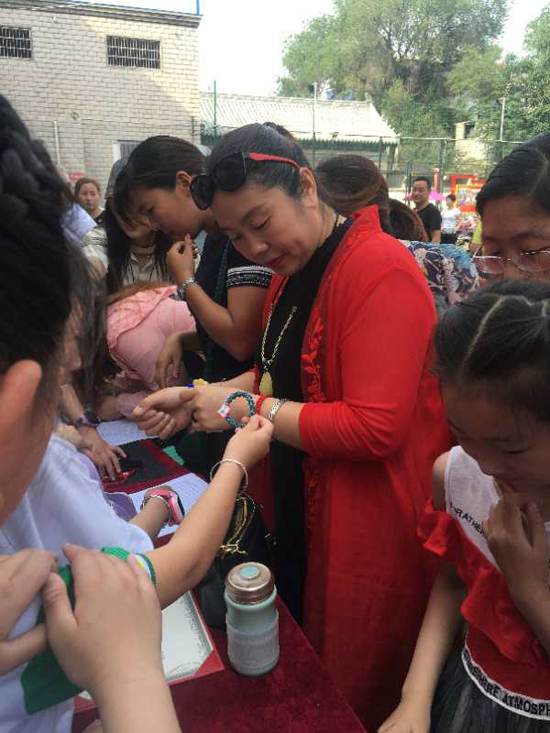 5月25日上午,沈丘縣中國(guó)結(jié)第七代傳承人李?;ㄗ哌M(jìn)槐店鎮(zhèn)回民小學(xué),和學(xué)?!爸袊?guó)結(jié)”手工編織興趣班的20名學(xué)生舉行“愛心義賣,情暖校園”主題活動(dòng)。不到半小時(shí),100多件作品被搶購(gòu)一空還預(yù)定了很多。據(jù)悉,這次義賣共得到1200余元,將全部捐給“槐店鎮(zhèn)中心學(xué)校教育基金”,用來(lái)資助該鎮(zhèn)經(jīng)濟(jì)困難師生、獎(jiǎng)勵(lì)優(yōu)秀教師和學(xué)生、資助教育教研等重大活動(dòng)項(xiàng)目。