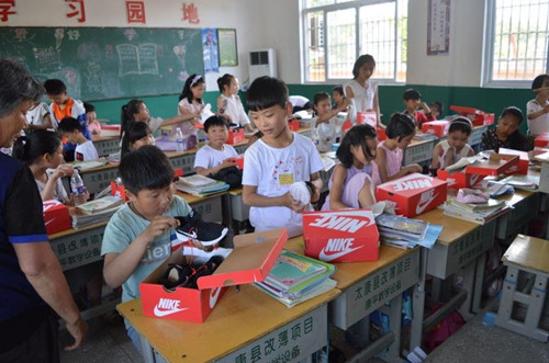 說干就干,回到公司,他便安排專人負(fù)責(zé),為母校的260多名師生每人購買了一雙出廠價200余元,總價值5萬余元而市場價則需10多萬元的國際知名品牌—耐克牌運動鞋,為學(xué)校落實陽光體育運動,強(qiáng)健孩子的體魄打下了良好的物質(zhì)基礎(chǔ),受到當(dāng)?shù)馗扇旱囊恢潞迷u。