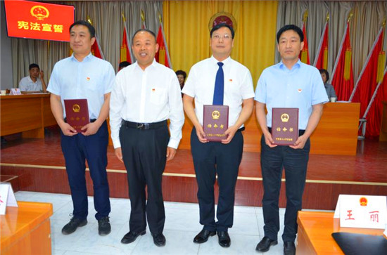 會議書面學習了栗戰(zhàn)書委員長在全國人大常委會水污染防治法執(zhí)法檢查組第一次全體會議上的講話,聽取審議了太康縣人大常委會執(zhí)法檢查組關(guān)于檢查水污染防治“一法一條例”貫徹實施情況的報告,聽取審議了縣城市管理局、縣農(nóng)業(yè)農(nóng)村局、縣文化廣電和旅游局、縣應急管理局主要負責人述職報告并進行滿意度測評。會議根據(jù)縣人民政府的提請,依法免去卜迎濤、張國慶兩位同志的太康縣人民政府副縣長職務,任命耿黨恩、李煒、孟濤三位同志為太康縣人民政府副縣長,被任命的同志進行了憲法宣誓,張思民為被任命同志頒發(fā)了任命書。