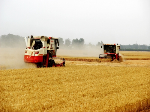 大型收割機(jī)在搶收小麥