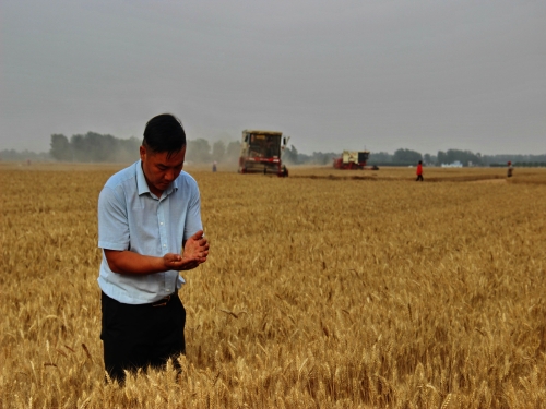 6月4日,李喜糧在田間查看麥粒質(zhì)量
