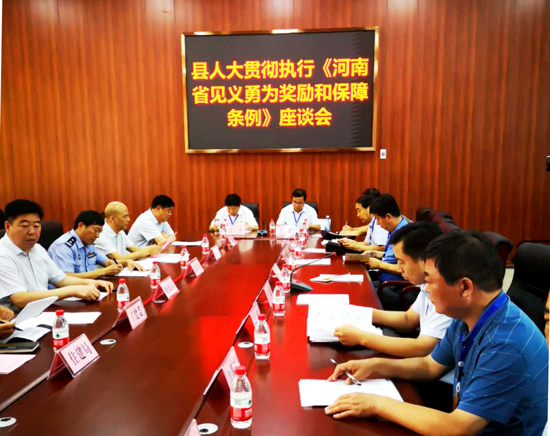 執(zhí)法檢查組召開座談會(huì),聽取縣政府及相關(guān)部門關(guān)于貫徹實(shí)施《河南省見義勇為人員獎(jiǎng)勵(lì)和保障條例》情況的匯報(bào)。部分市縣人大代表就貫徹執(zhí)行《條例》提出了一些意見和建議,檢查組對(duì)全縣落實(shí)《條例》情況給予充分肯定。