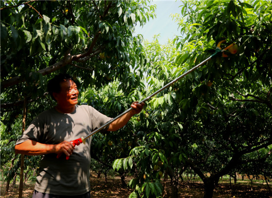 盛夏來臨,正值鮮桃豐收采摘的大好時節(jié),素有現(xiàn)實版“世外桃源”之美譽的西華縣黃橋鄉(xiāng)萬畝桃園果壓枝頭,滿眼水潤圓滾的鮮桃芳香四溢。