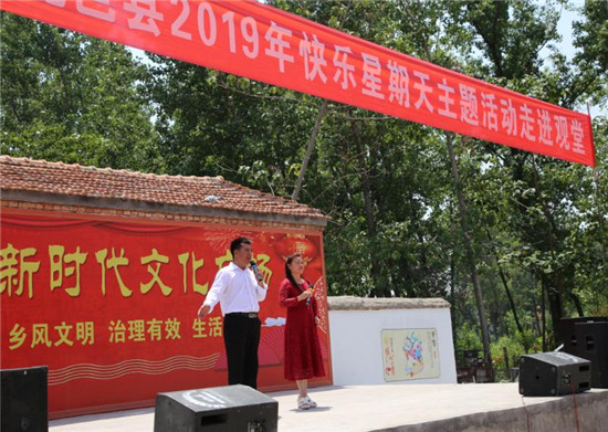 “這戲唱的真帶勁!聽得真癮!”雖然演出已經(jīng)結(jié)束,但郭窯村75歲的村民郭思勤依然坐在原地,久久不愿離去。 據(jù)悉,為確?!翱鞓沸瞧谔臁敝黝}活動取得實(shí)效,鹿邑縣委宣傳部、統(tǒng)戰(zhàn)部高度重視,統(tǒng)籌各種資源,動員全縣文聯(lián)和文藝八大協(xié)會等各方力量,創(chuàng)新活動載體,豐富活動形式,不斷深化群眾性精神文明創(chuàng)建活動,培育和踐行社會主義核心價值觀,不斷增強(qiáng)群眾的幸福感和獲感。鹿邑縣委宣傳部社宣科負(fù)責(zé)人寧偉在現(xiàn)場表示:“我們今年精心準(zhǔn)備了40場文藝大餐,每周都會組織文化、科技、醫(yī)療等戰(zhàn)線上的志愿者下鄉(xiāng)進(jìn)村進(jìn)行文藝演出、開展志愿服務(wù),讓基層的文化活動更加豐富多彩,讓群眾在家門口就能享受到更多貼心的服務(wù)?!?