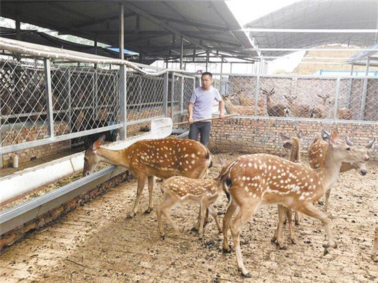 在沈丘縣卞路口鄉(xiāng)趙莊村,返鄉(xiāng)大學生趙沛陽從2018年開始學習梅花鹿飼養(yǎng)技術,并投資100多萬元建起養(yǎng)殖場,發(fā)展特色養(yǎng)殖業(yè),收益可觀。在養(yǎng)鹿過程中,趙沛陽優(yōu)先聘用周邊貧困群眾到養(yǎng)殖場工作,不僅給他們發(fā)工資,還教給他們養(yǎng)殖技術,幫助貧困群眾脫貧致富。記者 韋偉 攝