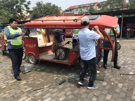 嚴管形成了高壓態(tài)勢,厚愛更維護了鄲城縣文明執(zhí)法的良好形象。該縣規(guī)定,對家用電動三輪車、電動四輪車進入縣城禁行區(qū)域的,文明執(zhí)法,不予處罰,以暫扣警示、宣傳勸導為主。對于從事非法營運的電動兩輪車、電動三輪車、電動四輪車車主不予經(jīng)濟處罰,車棚自愿切割后放行。對于老弱病殘等特殊情況及時匯報領(lǐng)導,酌情處理。