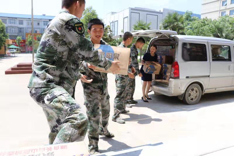 打開車門,在李丹的組織下,幾名預(yù)備役士兵一字排開,一件件礦泉水被從車上卸下來(lái),擺放到門廳下。“這天太熱了,來(lái)兄弟,先喝點(diǎn)礦泉水解解渴。”李丹一邊給士兵們發(fā)放礦泉水,一邊心疼地說(shuō)。