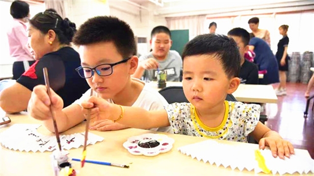北京市懷柔區(qū)泉河街道新賢家園社區(qū)開(kāi)展“DIY手工水印折扇,喜迎祖國(guó)70華誕”主題活動(dòng),40余名青少年共同學(xué)習(xí)體驗(yàn)水印折扇的文化和樂(lè)趣。