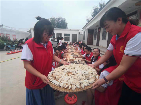“家有父母/真的好幸福/縱然身后淚千行/不如身前多付出……”9月11日上午11時(shí)30分,伴隨著一首《家有父母好幸?!返母杪暎瑦?ài)心志愿者把一碗碗熱氣騰騰的餃子端到西華縣紅花鎮(zhèn)杜崗村600多位老人面前。