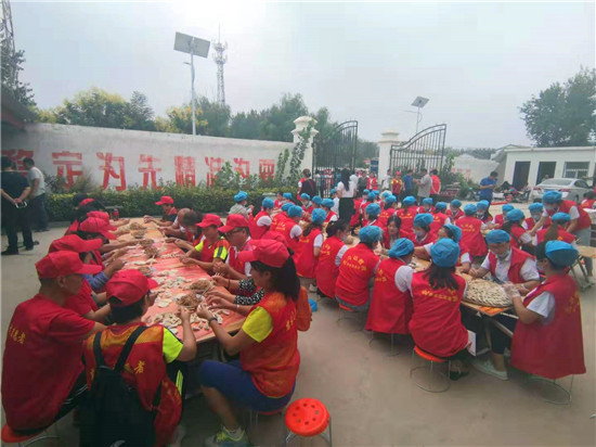當(dāng)天上午,一場(chǎng)由周口市紀(jì)委監(jiān)委駐杜崗村工作隊(duì)聯(lián)合紅花鎮(zhèn)、杜崗村、周口北斗達(dá)教育集團(tuán)共同舉辦的孝老餃子宴,在該村文化廣場(chǎng)別開(kāi)生面地拉來(lái)序幕?!按謇锼?0歲(含60歲)以上的老人今天中午都到文化廣場(chǎng)來(lái)吃餃子啊,市紀(jì)委和愛(ài)心企業(yè)來(lái)為我們包餃子啦……”8時(shí)剛過(guò),杜崗村黨支部書(shū)記李長(zhǎng)青就通過(guò)村里的大廣播每隔半小時(shí)播報(bào)一次,生怕哪位老人忘了這檔子事兒。
