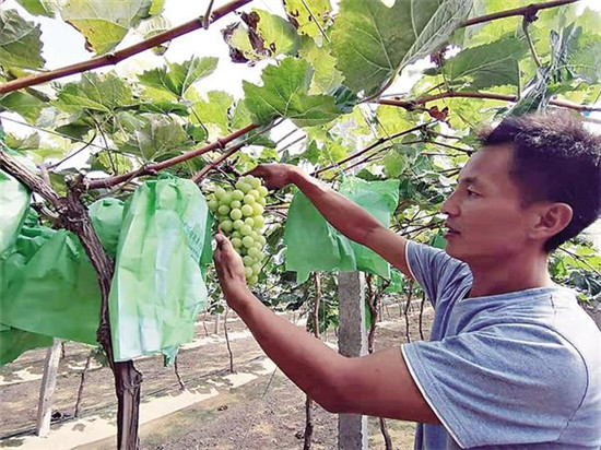 在楊樓村,轉(zhuǎn)業(yè)返鄉(xiāng)的李玉柱在土地上也做出了大文章。李玉柱在部隊服役15年,本可按政策安排工作。但是,他有著強烈的創(chuàng)業(yè)熱情。三年前,在鄉(xiāng)村兩級組織的支持下,他租用村集體土地,投入100多萬元搞葡萄種植。目前,葡萄進入豐產(chǎn)期,李玉柱每年都可實現(xiàn)收入20多萬元。