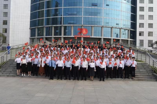 隨后,開發(fā)區(qū)黨委班子成員、開發(fā)區(qū)中層干部、普通黨員代表、教師黨員代表、消防隊員等200多人手執(zhí)國旗,齊聲合唱《我和我的祖國》《團結(jié)就是力量》等歌曲,展示開發(fā)區(qū)人昂揚向上的精神風貌,熱烈慶祝新中國成立70周年。