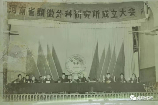 1983年河南省人民政府決定在鄲城縣建立河南省顯微外科研究所(圖為成立大會)。1984年省衛(wèi)生廳撥款58.6萬元在醫(yī)院內(nèi)建設(shè)河南省顯微外科研究樓。