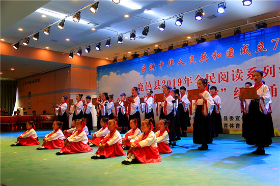 據(jù)了解,全民閱讀系列活動中的“經(jīng)典誦讀”活動是提高學(xué)生文化審美素養(yǎng)、促進(jìn)學(xué)生健康成長的民心工程,宣傳文化部門和教育工作者要肩負(fù)起傳承經(jīng)典、發(fā)揚國粹、光大中華傳統(tǒng)文化的責(zé)任,讓國學(xué)精粹真正走進(jìn)校園,走進(jìn)課堂。讓傳統(tǒng)文化得以真正的繼承和發(fā)展,讓學(xué)生真正接受優(yōu)秀傳統(tǒng)文化的熏陶和啟迪。