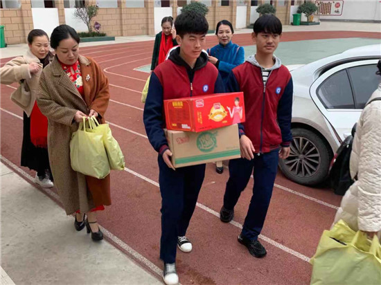 “你們真是太好了,感謝你們?yōu)楹⒆觽兯蛠淼拿抟潞兔姘!?1月23日,項(xiàng)城市特殊教育學(xué)校校長李寧握住志愿者郭英的手激動地說。
