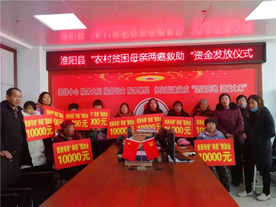 12月19日上午,淮陽(yáng)縣婦聯(lián)舉行第二批農(nóng)村貧困婦女“兩癌”救助金集中發(fā)放儀式,為14名患“兩癌”貧困受助婦女發(fā)放每人1萬(wàn)元,共計(jì)14萬(wàn)元的專項(xiàng)救助項(xiàng)目資金。