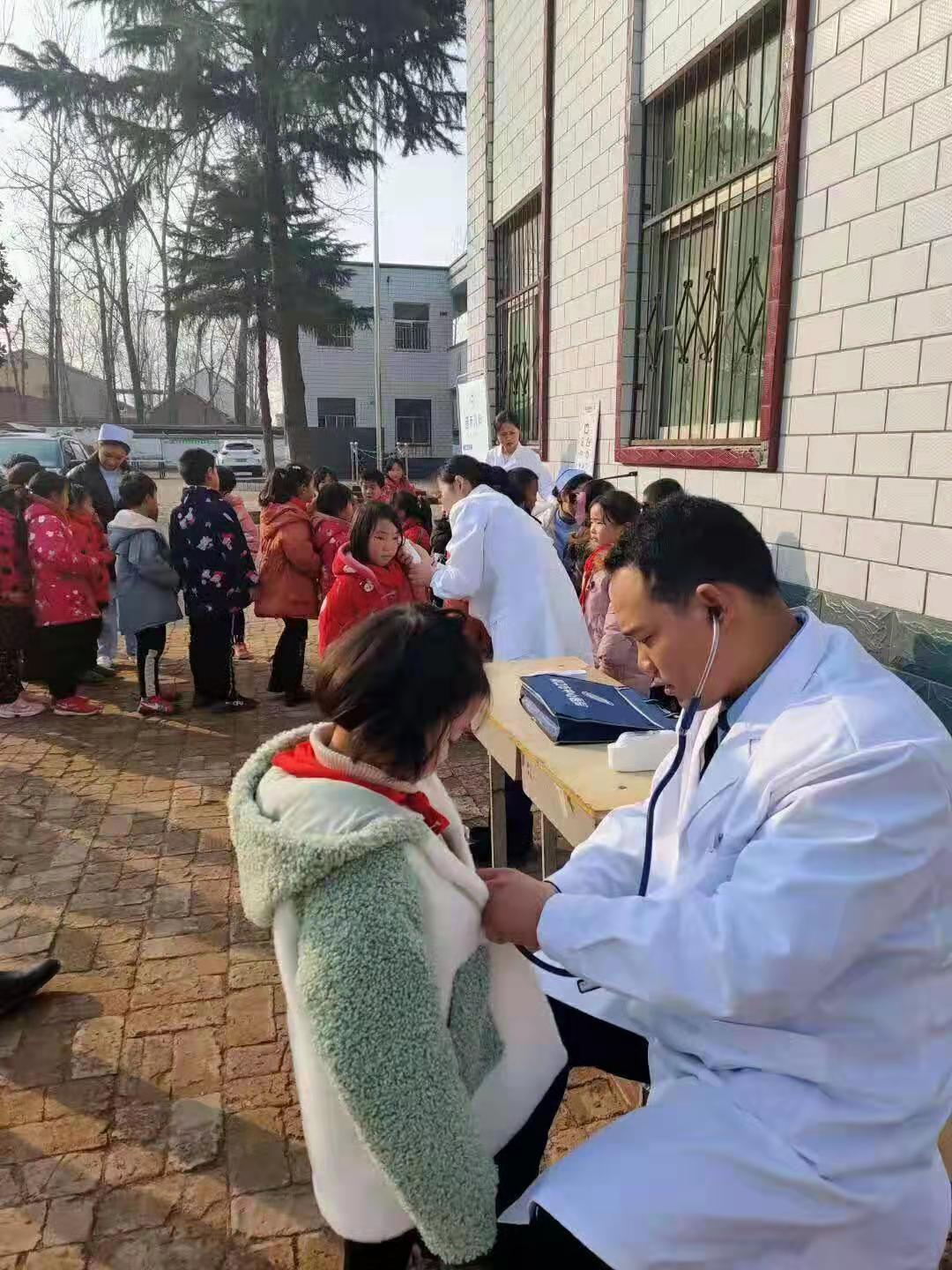 在隨后的義診活動中,普禾醫(yī)療集團兒科專家孫東風帶領醫(yī)療隊的成員為賈寨小學所有學生進行健康體檢,量身高、測體重、測視力、查胸透等,對有健康隱患的學生耐心講解注意事項。