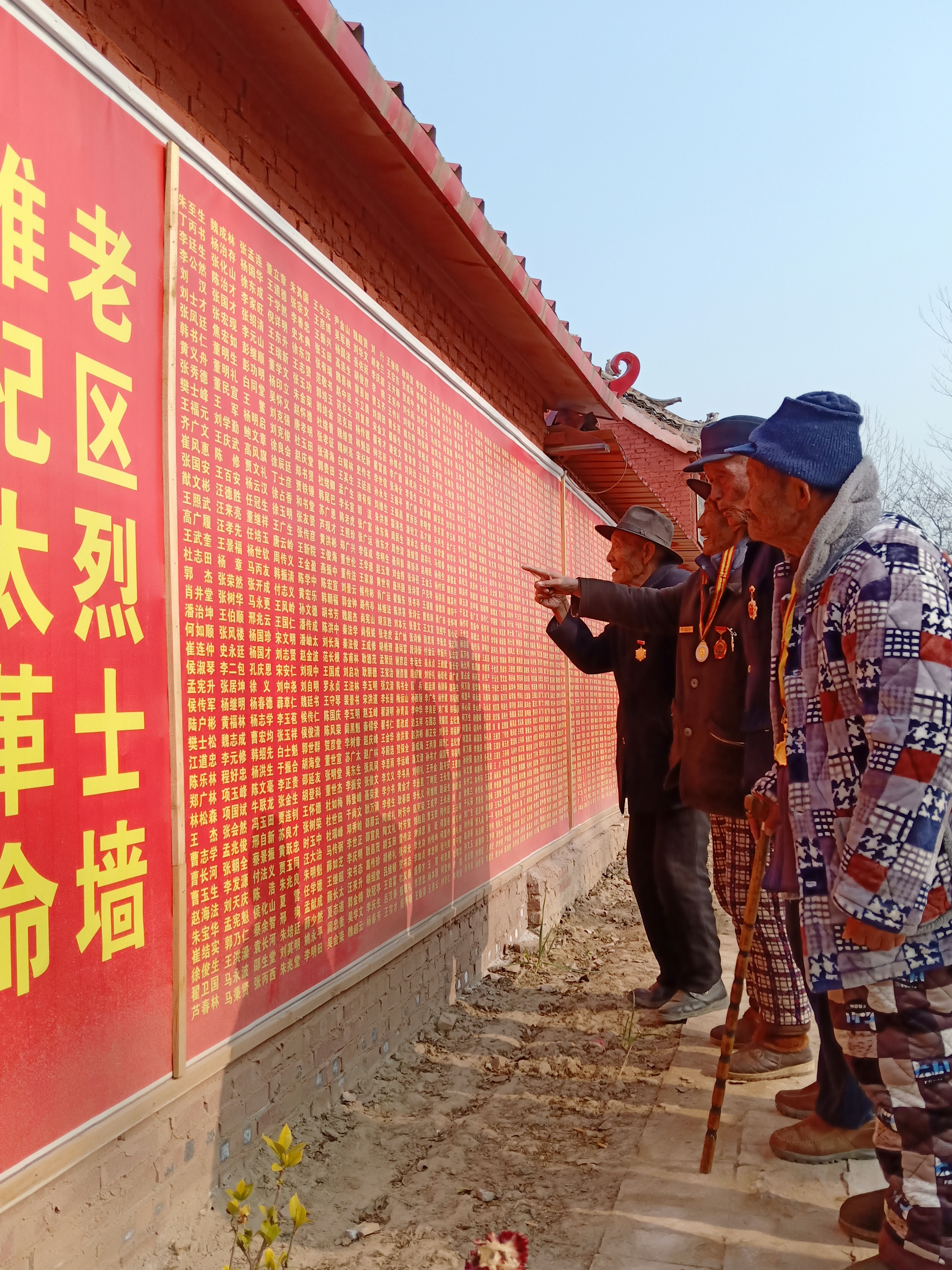 12月13日,在豫東平原一個名不見經(jīng)傳的小村莊——太康縣楊廟鄉(xiāng)三官廟村,該村及附近村莊的郭澤林(91歲)、孫增禮(93歲)、王福慶(94歲)、張新學(92歲)等抗戰(zhàn)老兵,邁著蹣跚的步子來到三官廟革命紀念館,在一面鐫刻著3800多名革命先烈名字的烈士墻上默默地尋找著自己戰(zhàn)友的名字,久久不愿離去……
